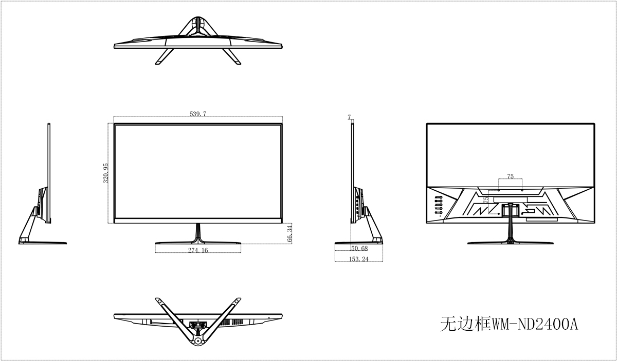監(jiān)視器尺寸:539.7mm(W)×320.95mm(H)×7mm(D)不含底座