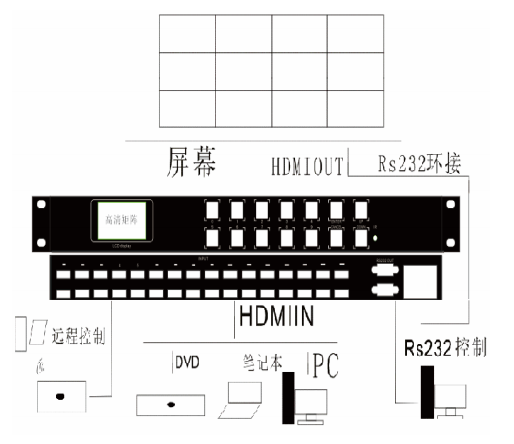 支持 16 路以下視頻信號輸入輸出 2K,HDCP1.4 信號任意切換;